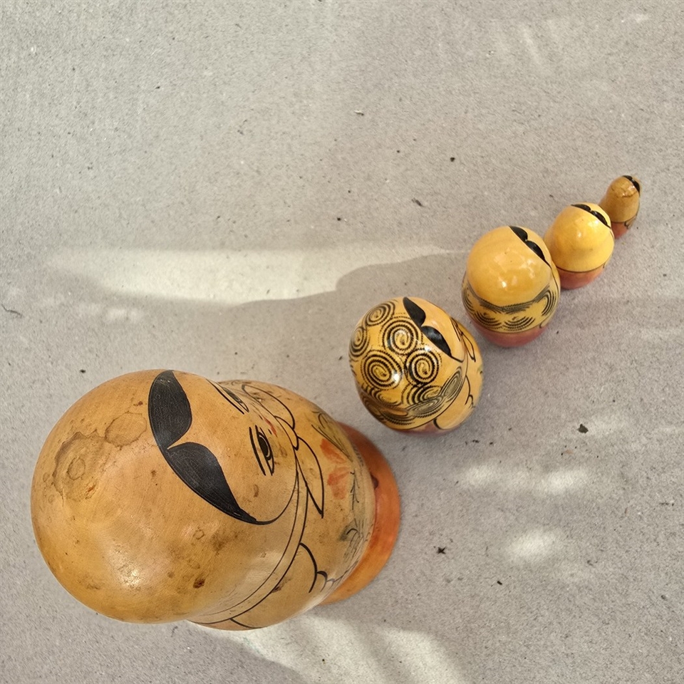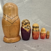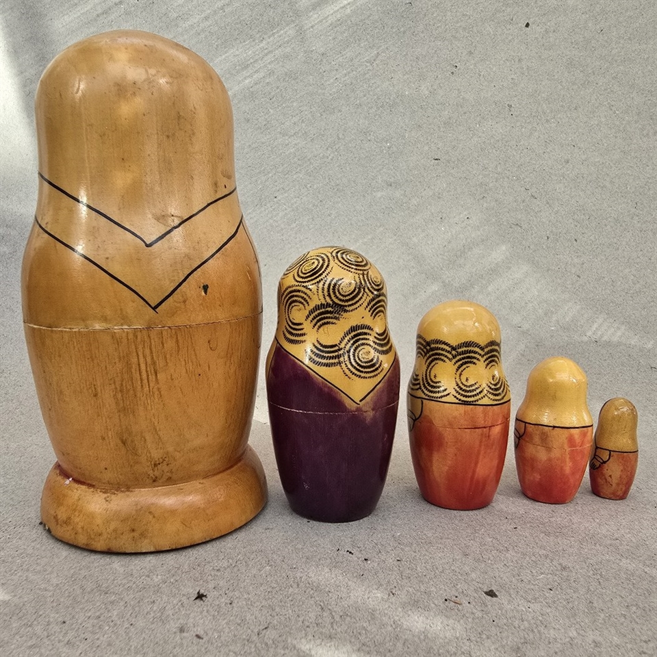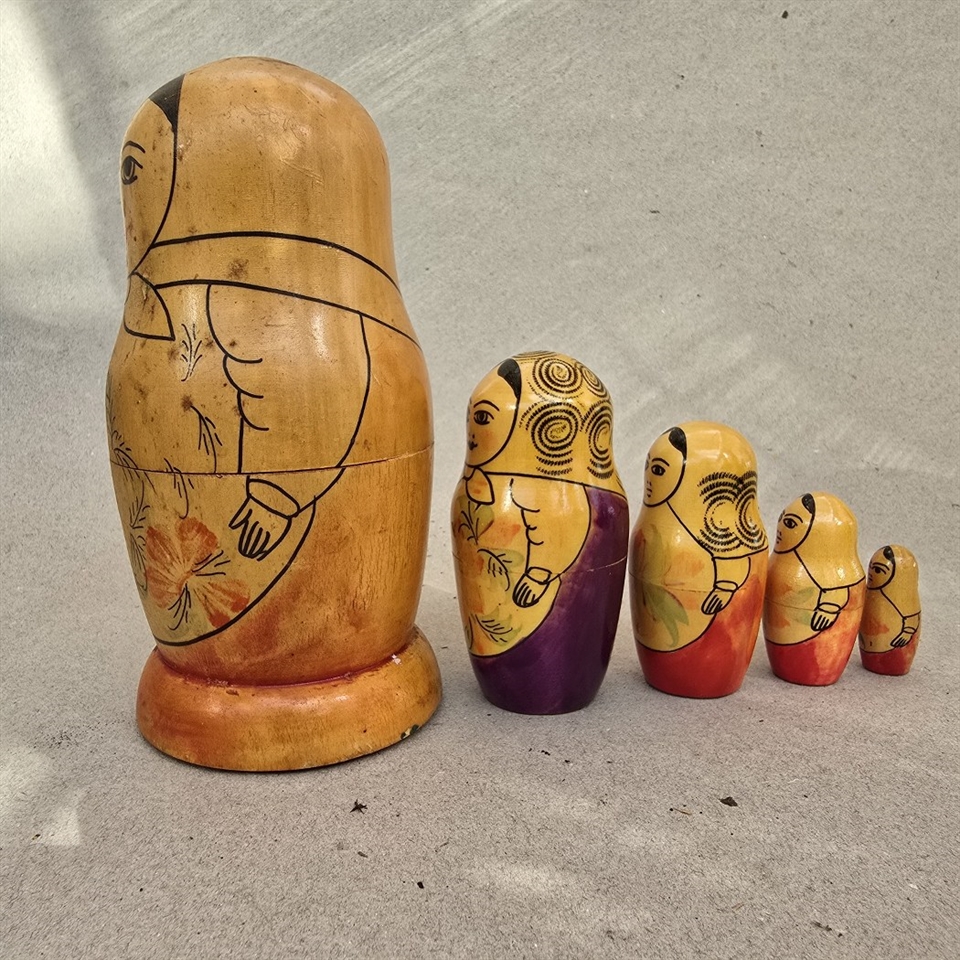Oplev en charmerende bid af historie med vores "Made in USSR, gamle babushka dukker, 5 indeni hinanden". Disse autentiske, håndmalede trædukker bringer et strejf af nostalgisk skønhed direkte fra Ruslands rige kulturhistorie til dit hjem. Hver dukke er omhyggeligt drejet af erfaren håndværk og skjuler indeni sig yderligere fire mindre dukker, hver enestående og detaljeret udført.
