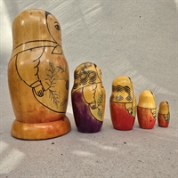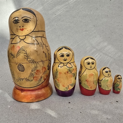 Den største dukke måler imponerende 16,2 cm. og åbner op til en verden af mindre versioner, der hver fortæller sin egen lille historie gennem fine, håndmalede detaljer. Denne samling er mere end blot dekorative genstande; de er ægte kunstværker, der vidner om det håndværk og den tradition, som har været en del af russisk kultur gennem generationer.
