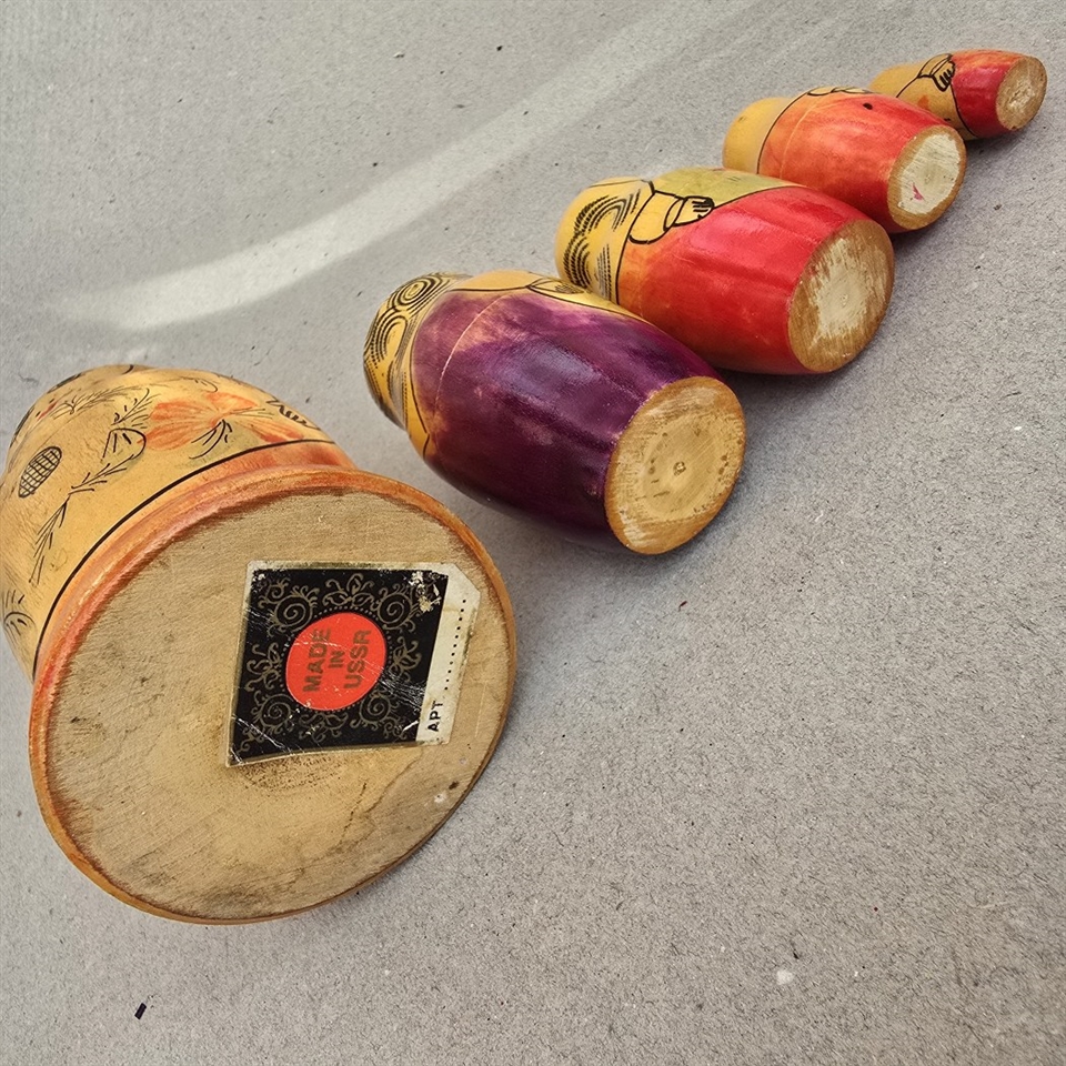 Tilføj et stykke historisk kunst til dit hjem med disse vidunderlige, gamle babushka dukker fra USSR. Grib chancen for at eje et stykke af historien, der fortsat begejstrer og fascinerer.