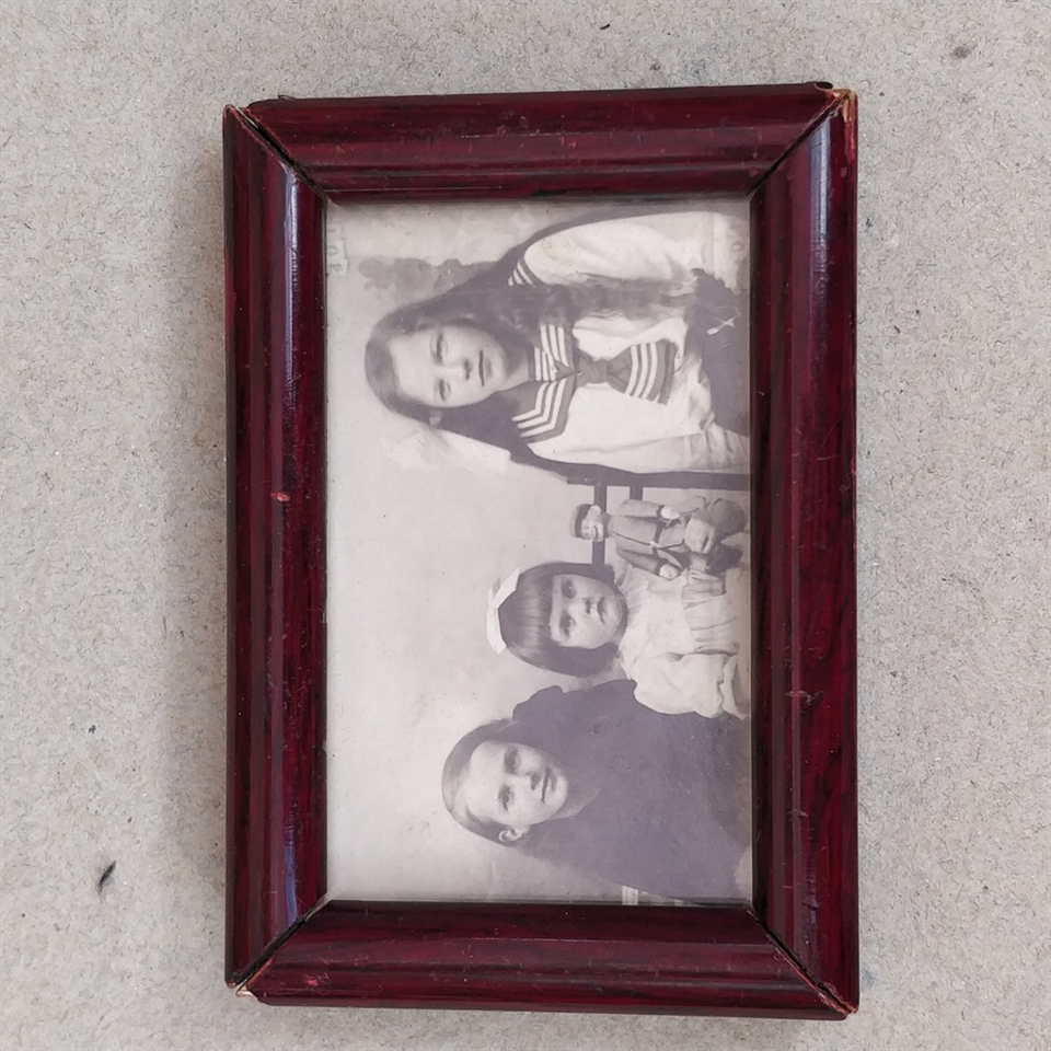 Indrammet i denne enkle, men klassiske mahogniramme er et gammelt fotografi af tre piger, der ikke alene fanger en svunden tid, men også fortæller en historie.