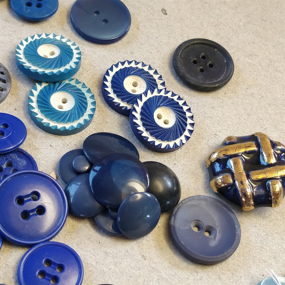 Gør dig klar til at udforske og eksperimentere med vores 'Mellem- og Mørkeblå Vintage Plastikknapper', og lad dem inspirere din næste store idé!