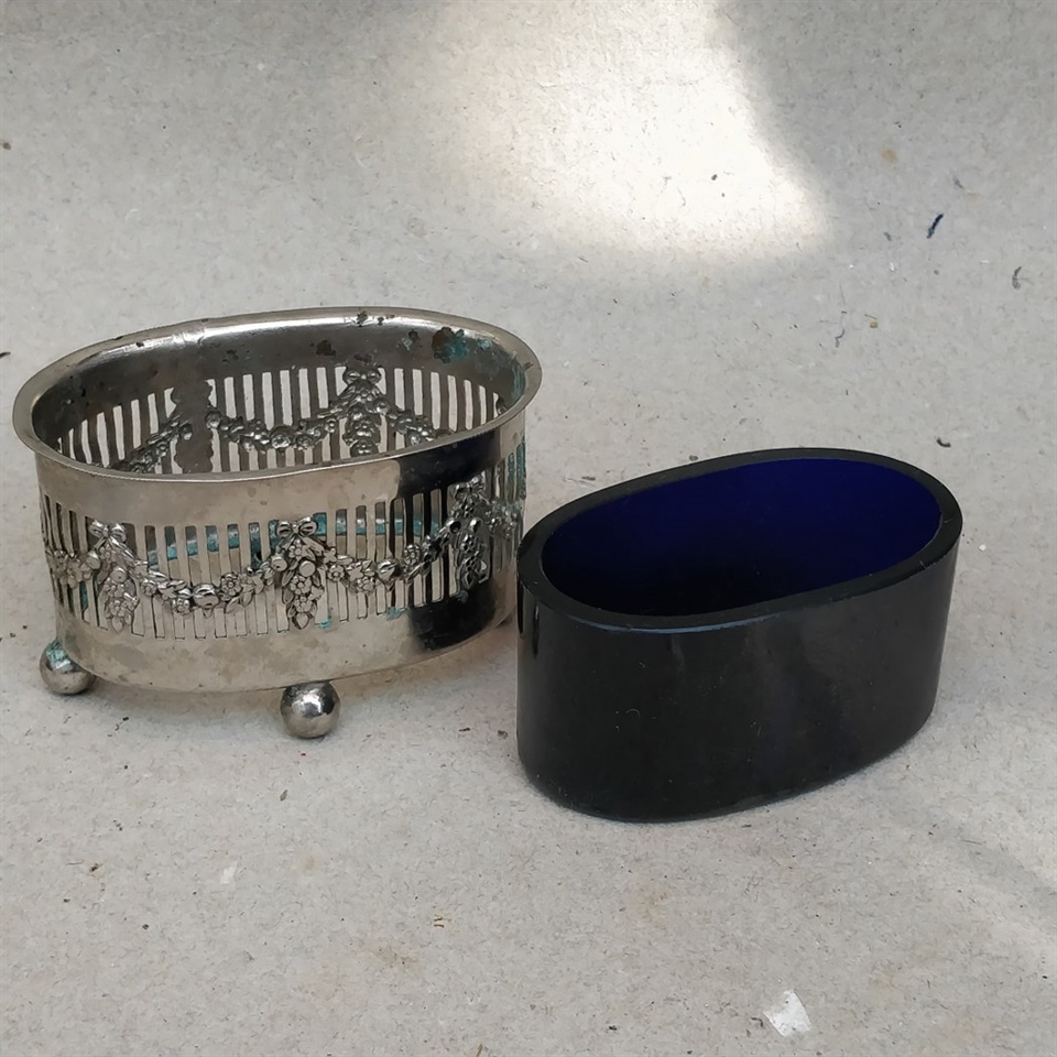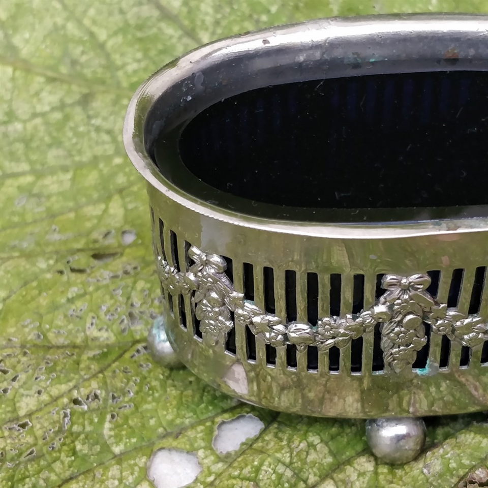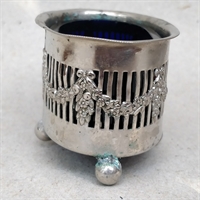 Opdag skønheden og elegancen i vores 'Metal, blåt glas saltkar, gammelt bordsaltkar'.