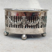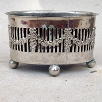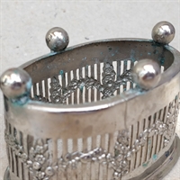 Holderen er lavet af metal og står på små, fint udformede ben, der tilføjer en ekstra finesse til dets overordnede udseende. Målene på dette unikke bordtilbehør er 7 cm. i længden, 4,5 cm. i bredden og 4,3 cm i højden, hvilket gør det til et diskret, men markant tilføjelse til din borddækning.