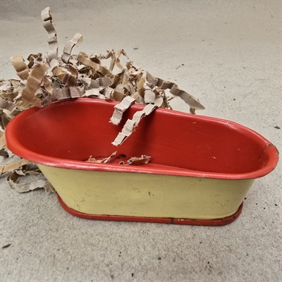 Dette gamle dukke badekar er ikke kun en fryd for øjet, men også en invitation til at lade børnenes (eller barnlige sjæles) kreativitet blomstre. Forestil dig de eventyr, små dukker kunne have, mens de plasker rundt i deres eget lille retro badekar! Det er et legetøj, der både kan inspirere til rollespil og fortælle historier fra en svunden tid.
