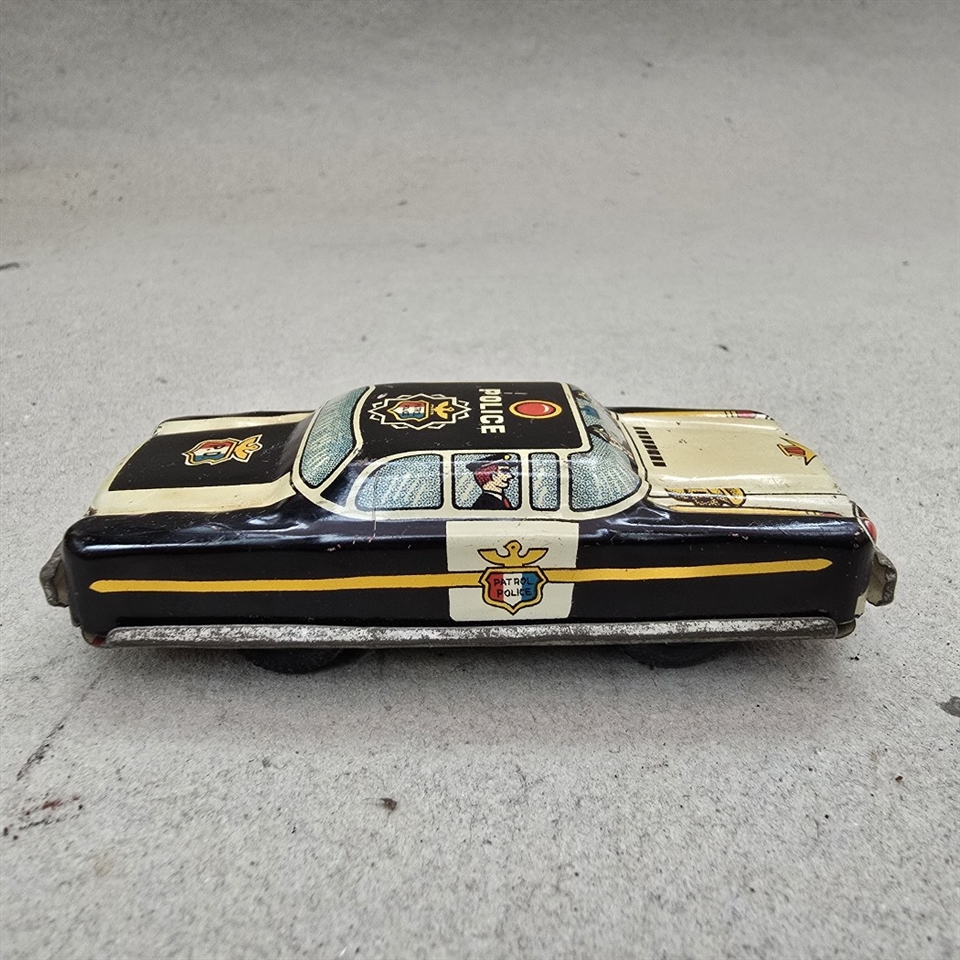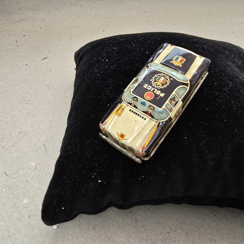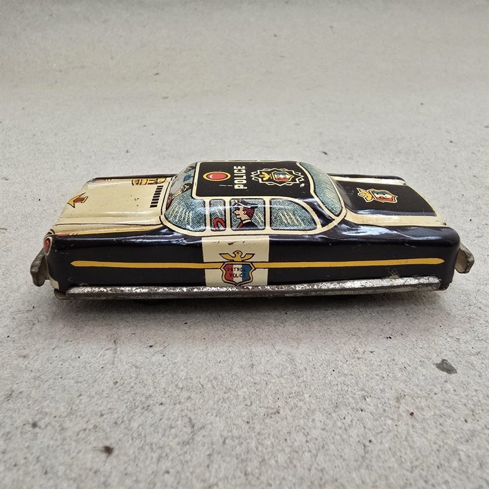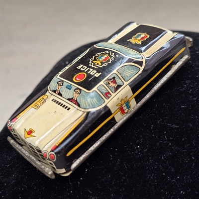 Uanset om du er en ivrig samler af vintage legetøj eller på udkig efter en unik gave, er denne gamle metal politibil en ægte perle.