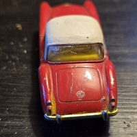Denne gammeldags MG Tekno modelbil er malet i en livlig rød farve med et kontrasterende hvidt tag, der tilføjer et strejf af stil og autenticitet. Detaljerne i modellen er nøje udformet for at genskabe det klassiske køretøj med præcision, hvilket gør den til en fremragende tilføjelse til enhver samling af vintage legetøjsbiler.