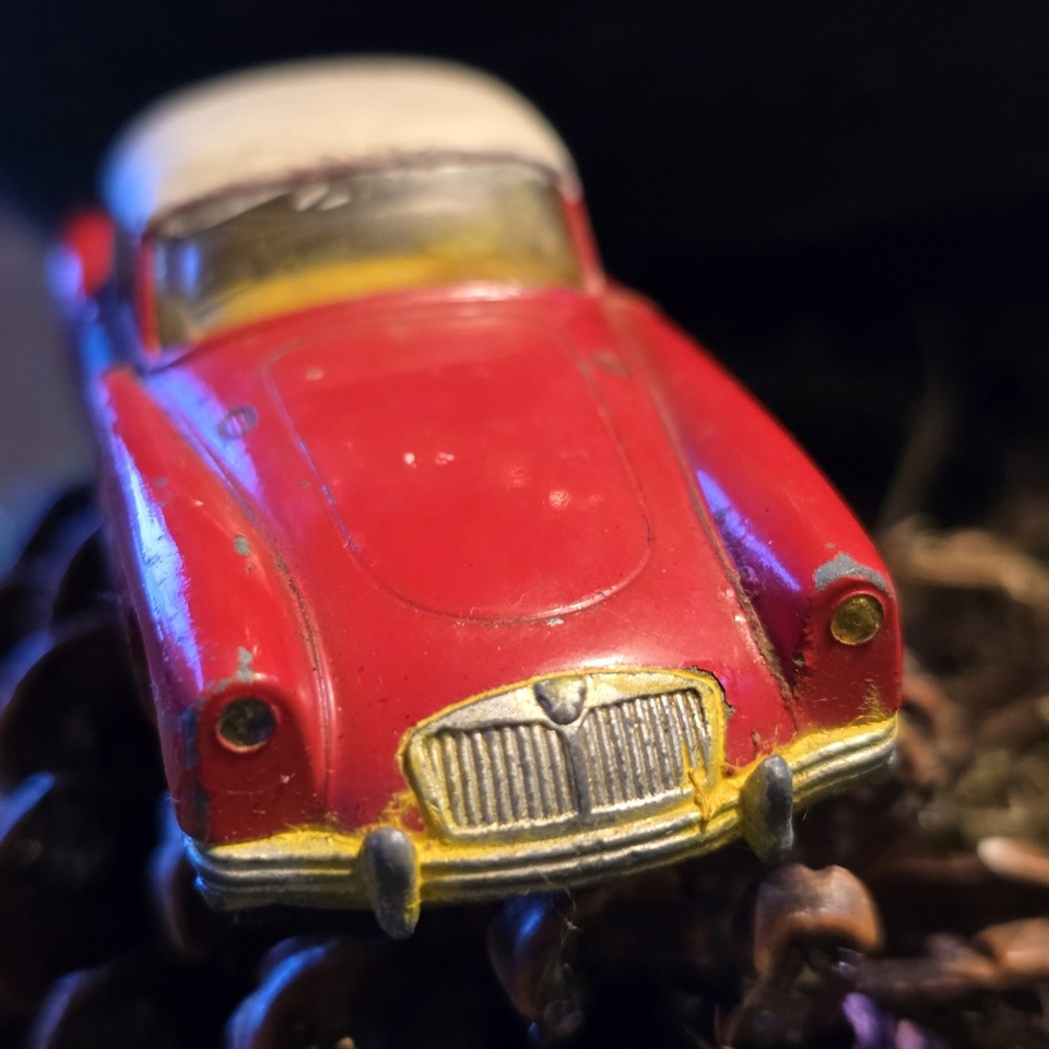 Perfekt for samlere, bilentusiaster, eller som en unik gave, vil denne røde MG Tekno modelbil med hvidt tag helt sikkert vække beundring og interesse. Tilføj et stykke historie til din samling og nyd den tidløse skønhed af denne mindeværdige legetøjsbil. Gør din samling eller hjemmedekoration komplet med denne eksklusive og charmerende modelbil.