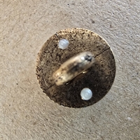 Hver knap er 10 mm. i diameter og fremstillet af plastik, designet med en attraktiv hvid ring og en gylden midte, der elegant indrammes af en fin guldkant.