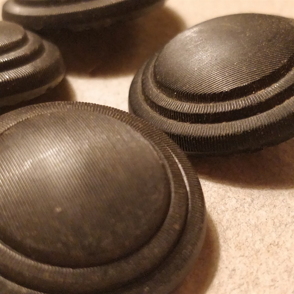 Opdag charmen og den unikke stil med vores 'Ministribede sorte gamle glasknapper, store knapper. 4 stk.'