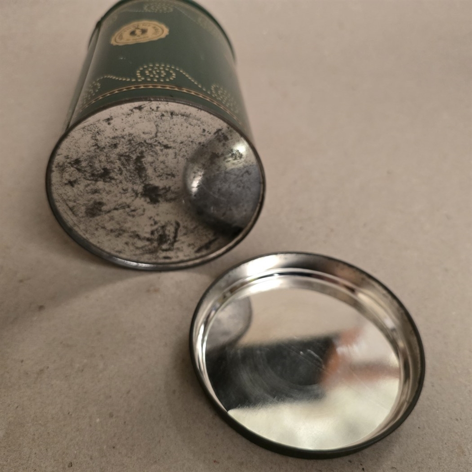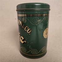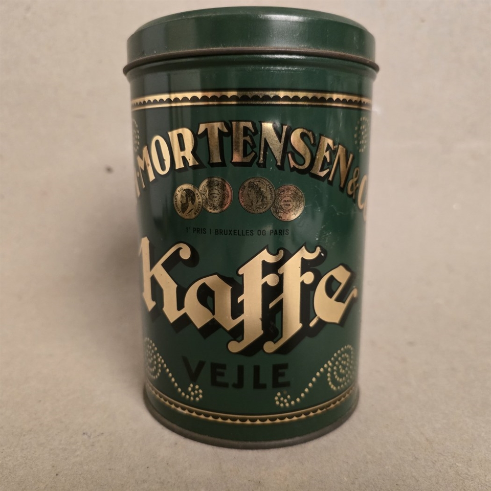 Opdag charmen af gammeldags elegance med vores 'Mørkegrøn kaffedåse fra L.H. Mortensen, Vejle'.
