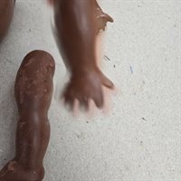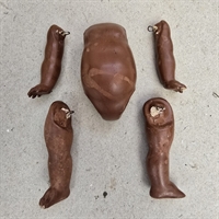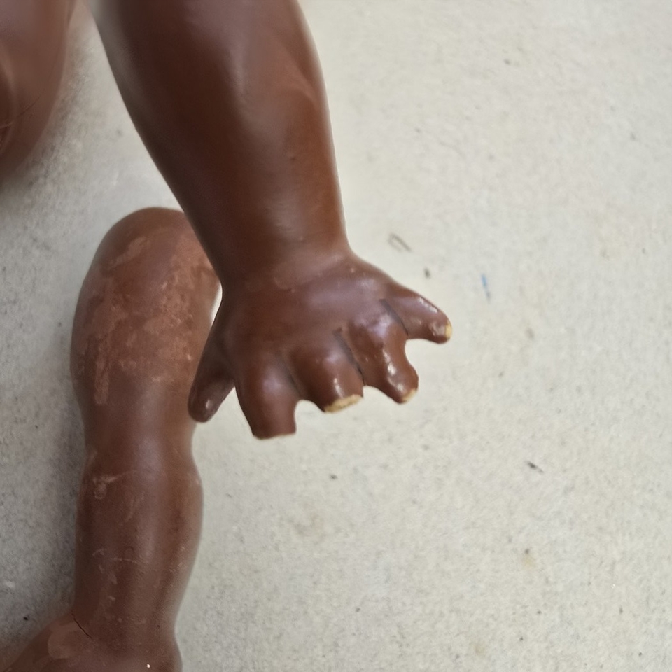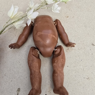 Opdag charmen ved det nostalgiske med vores 'Mørkhudet dukkekrop, gammelt stykke legetøj' – et autentisk fund for samlere og kreative sjæle! Denne unikke dukkekrop, komplet med arme og ben, er perfekt til både restaurering af vintage dukker eller som en særpræget dekoration i dit hjem.
