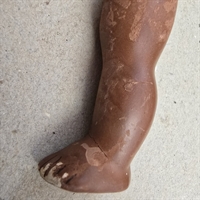 Vores mørkhudede dukkekrop er ikke bare et stykke legetøj; det er en lille bid af historien. Den bærer præg af tidens tand, hvilket gør hver enkelt krop unik. Sprækkerne fortæller historier fra en svunden tid og giver dukken karakter.