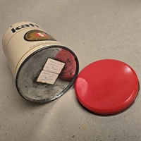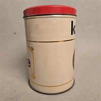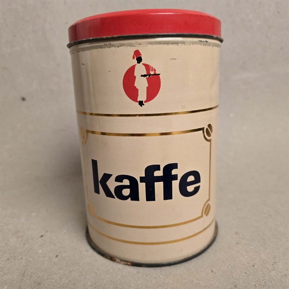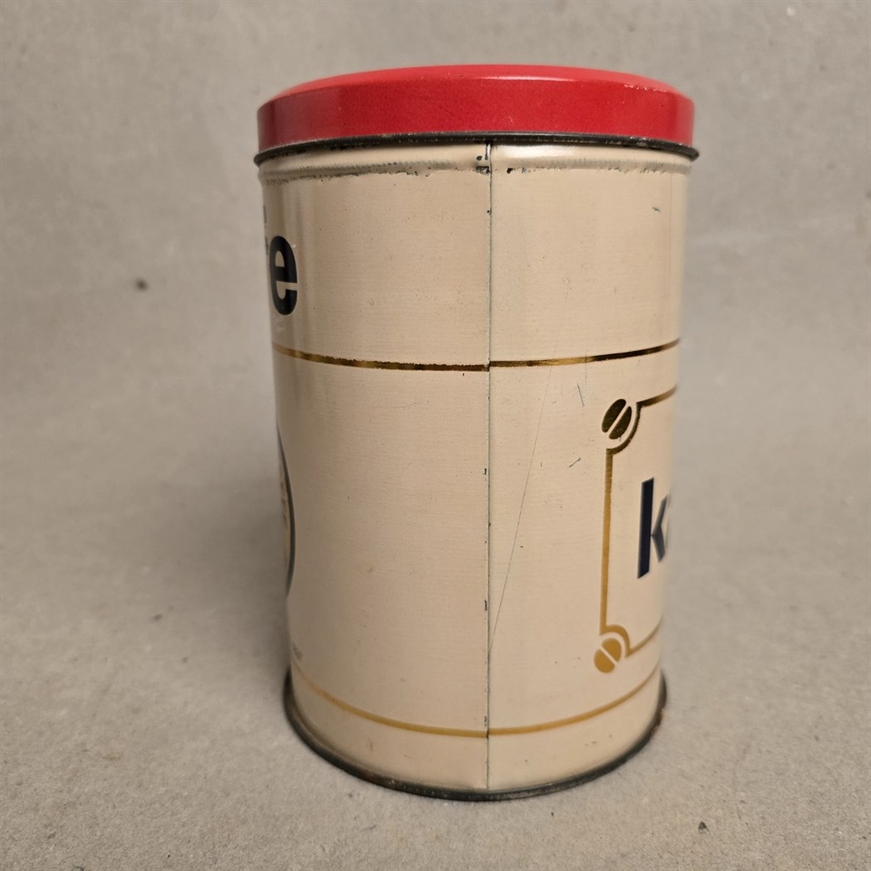 Denne eksklusive runde metaldåse er prydet med et iøjnefaldende rødt låg, som komplementeres af en cremefarvet krop med sofistikeret guldindramning. Den sorte tekst fremhæver dåsens vintage-charme og tilføjer et strejf af nostalgi til din daglige kafferutine.