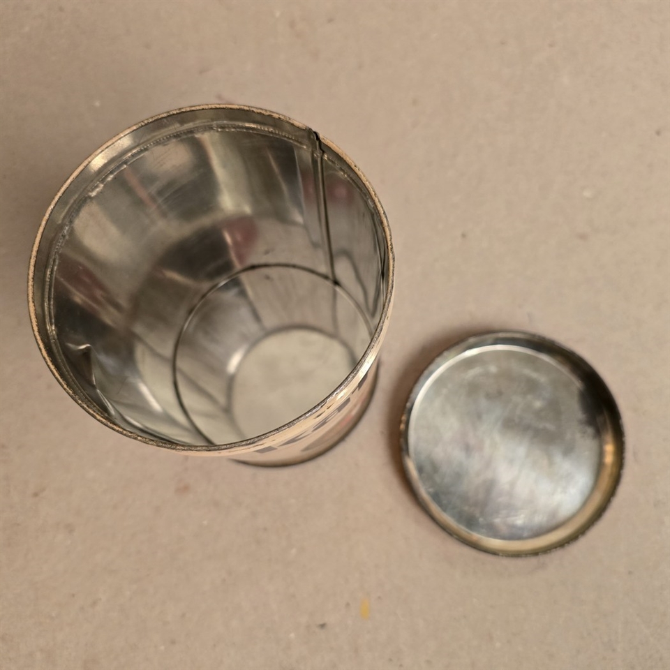 Med en højde på 16 cm. og en diameter på 11 cm., tilbyder denne dåse ikke blot praktisk opbevaring, men også en dekorativ funktion i ethvert køkken eller på ethvert kontor.