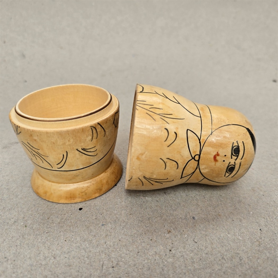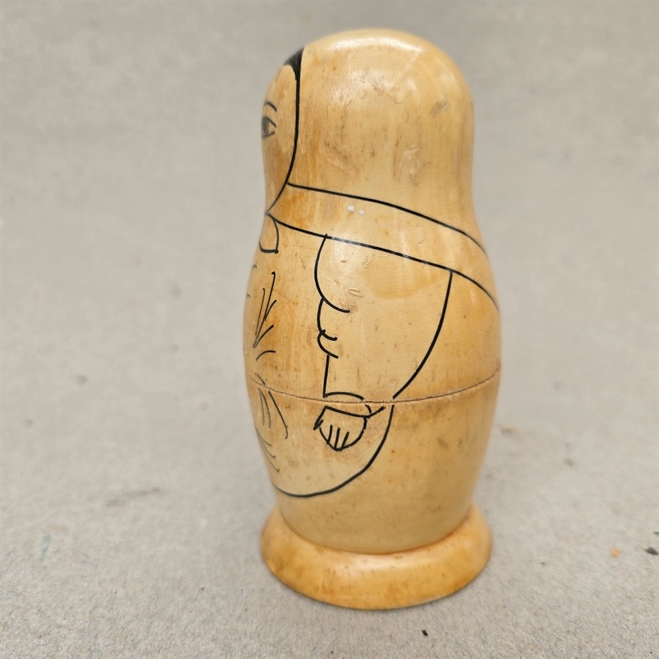 Perfekt for samlere eller som en speciel gave. Denne naturtræ babushka dukke er et ægte genbrugsfund, der tilbyder både historisk værdi og æstetisk appel.