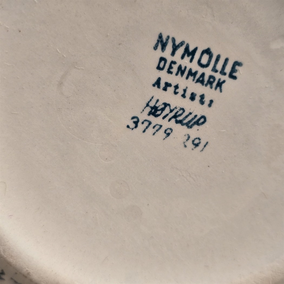 Den detaljerede dekoration og kvaliteten af porcelænet reflekterer Nymølle fabrikkens dedikation til håndværk og design.