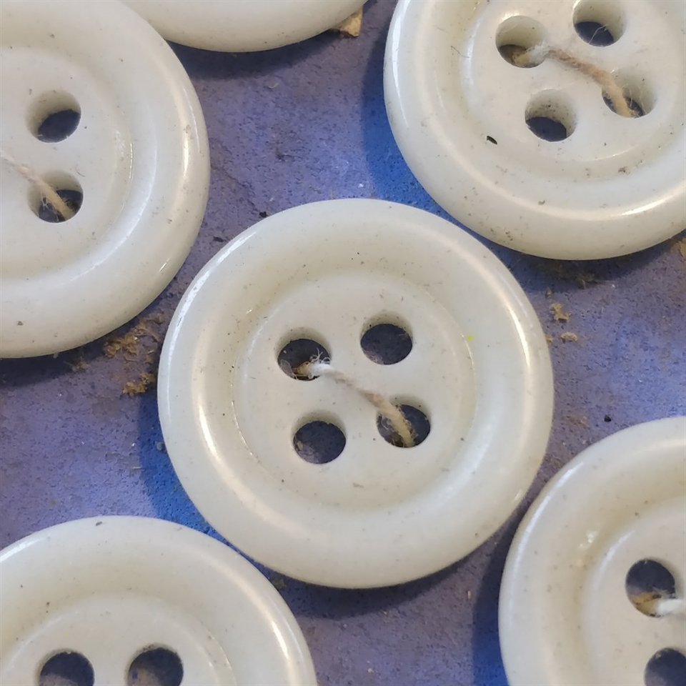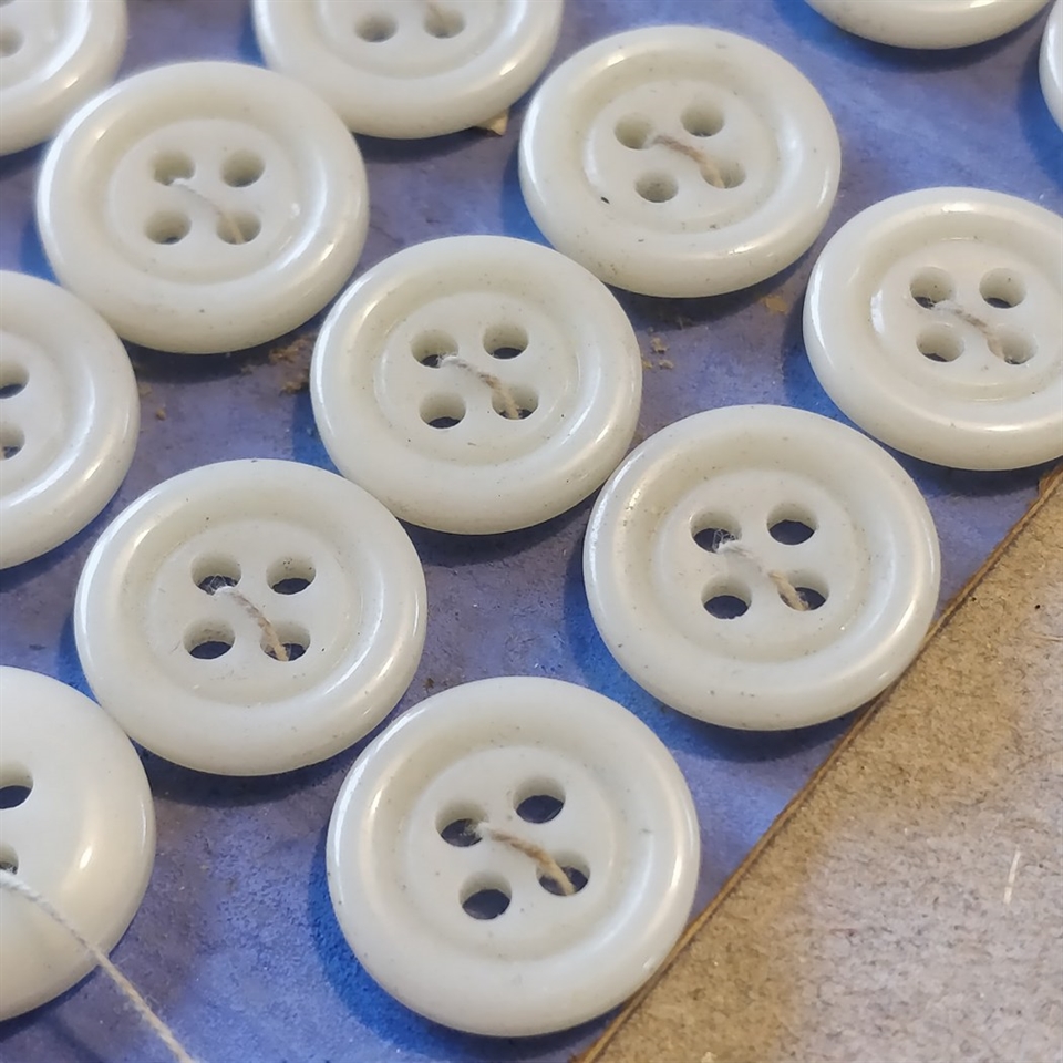 Hver knap er omhyggeligt formet med en attraktiv buet kant og præsenterer en sofistikeret offwhite farve, der komplementerer et bredt udvalg af stoffer og mønstre.