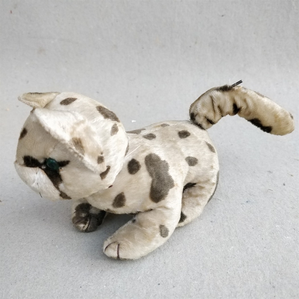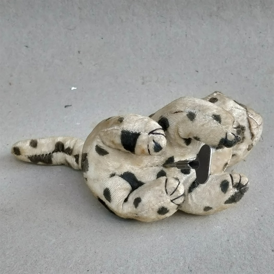 'Optræk, prikket gammel patineret plyskat, med nøgle' er ikke bare et legetøj, men et stykke af historien.