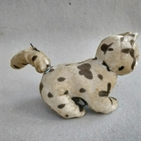 Mærk charmen fra svundne tider med 'Optræk, prikket gammel patineret plyskat, med nøgle' – et unikt stykke vintage legetøj, der vil vække nostalgi og glæde.