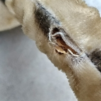 Den patinerede effekt på plysset giver en fornemmelse af autenticitet og historie, hvilket gør denne plyskat til en ideel tilføjelse for enhver, der sætter pris på gamle eller retro legetøjsartikler.