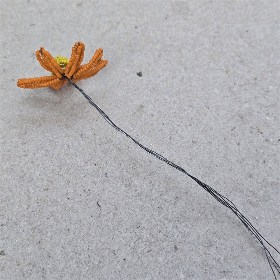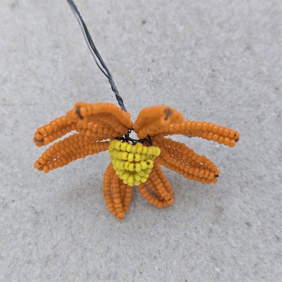 Opdag den fortryllende skønhed og historiske elegance med vores 'Orange glasperle blomst, gammel fransk perleblomst'.