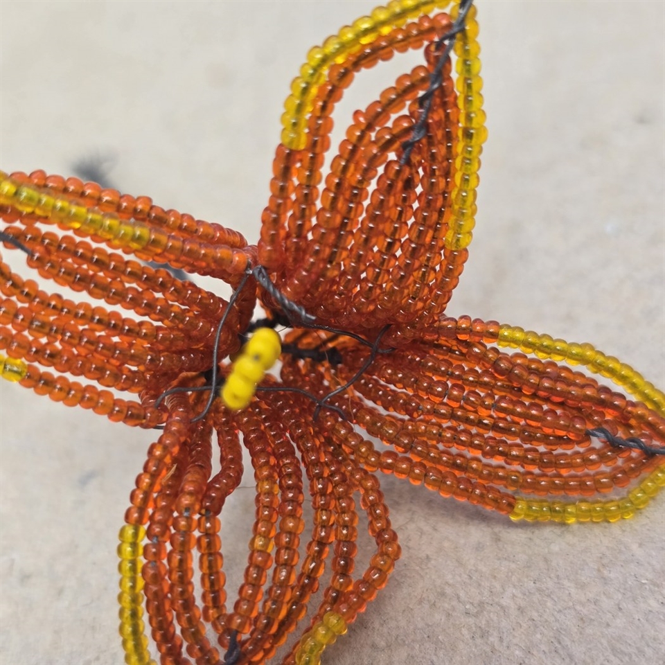 Opdag den fortryllende skønhed og det tidløse håndværk i vores "Orange gul french beaded glasperle blomst. Vintage." Denne eksklusive perleblomst er en ægte repræsentation af klassisk fransk håndarbejde, der vil tilføre en aura af elegance og raffinement til enhver samling.