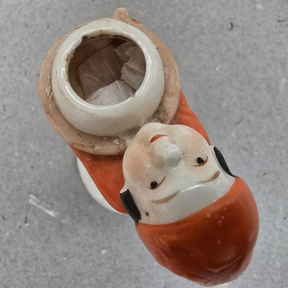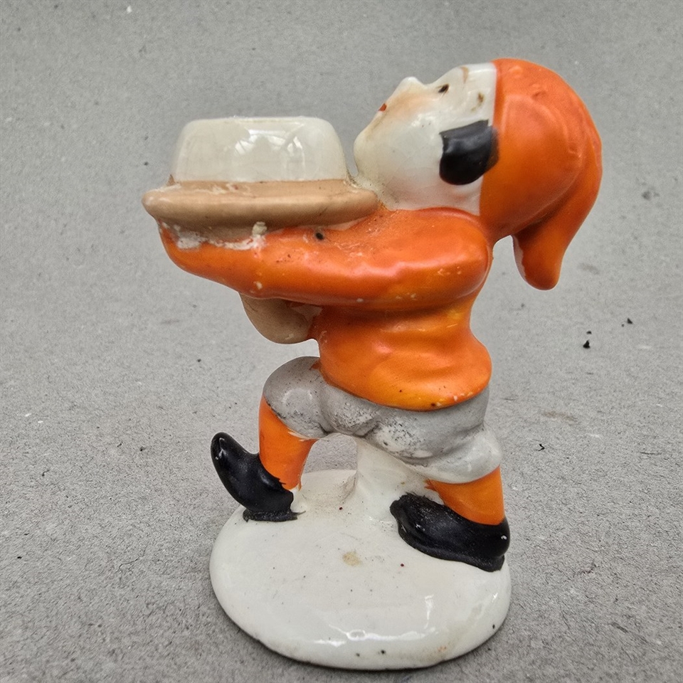 Opdag den charmerende skønhed af vores 'Orange julefigur' – en unik, vintage porcelæns stage til juletræslys, importeret direkte fra Japan.