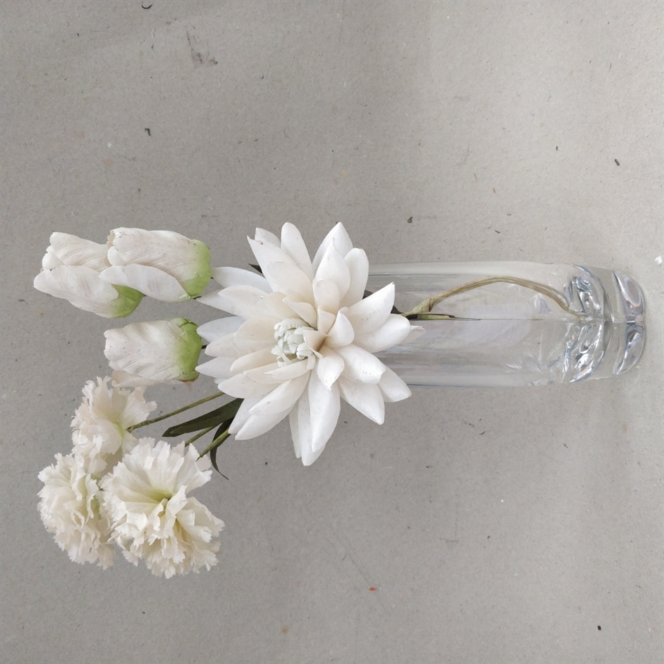 Vasens klare glas fremhæver dens rene linjer og enkle form, hvilket gør den ideel til at præsentere alt fra friske blomsterbuketter til dekorative grene.