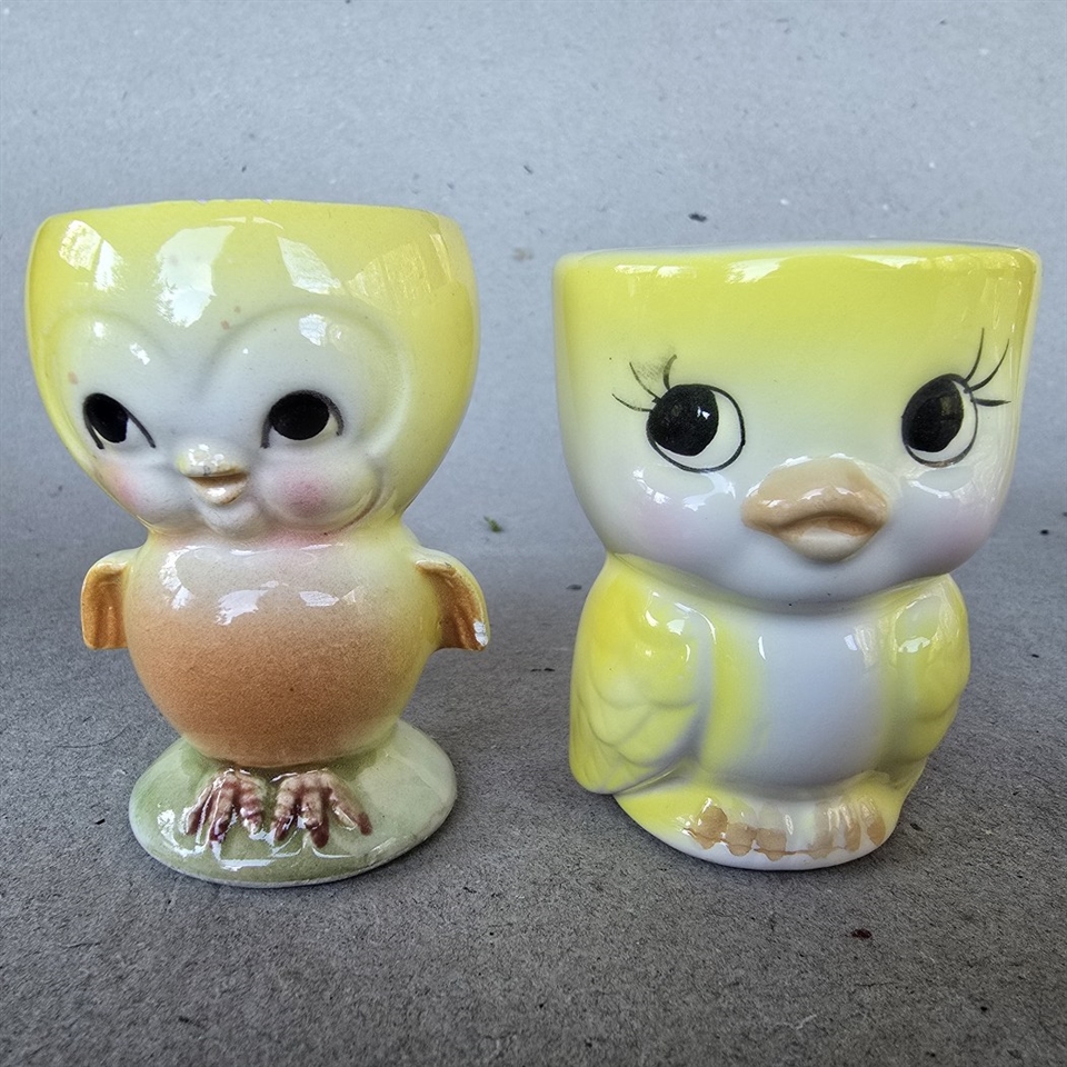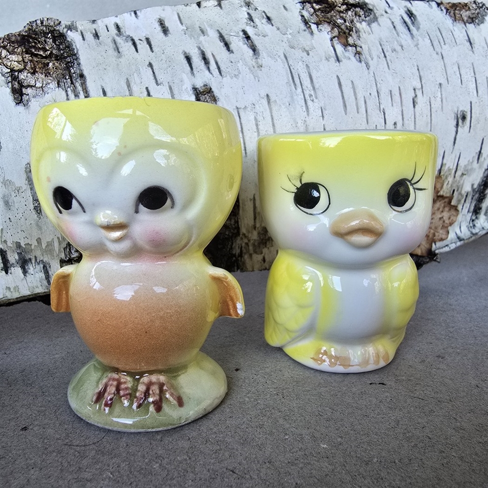 Opdag charmen ved vintage påske med disse nostalgiske 'Påskeæggebægre kyllinger med store øjne'.