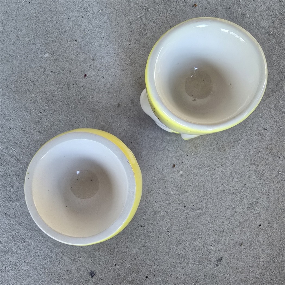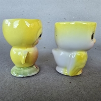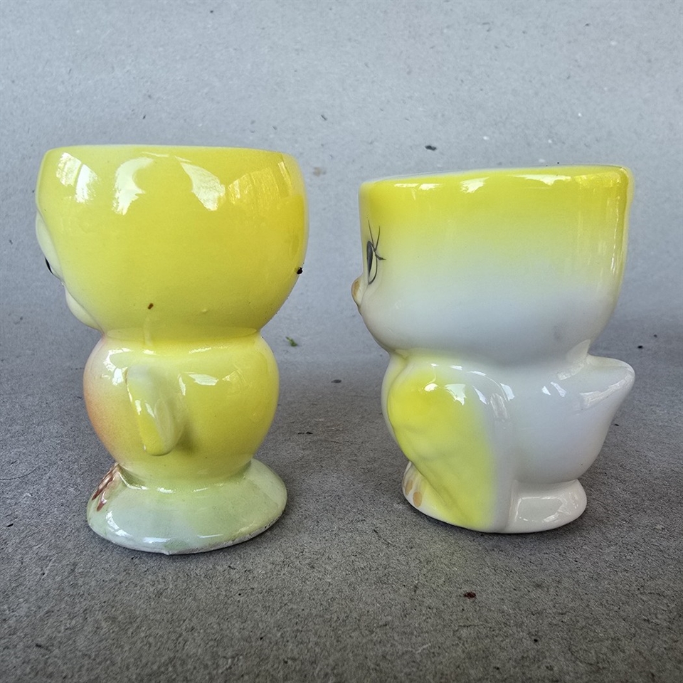 Hver æggebærer er formet som en sød kylling i gule og brune nuancer, fremstillet i porcelæn.