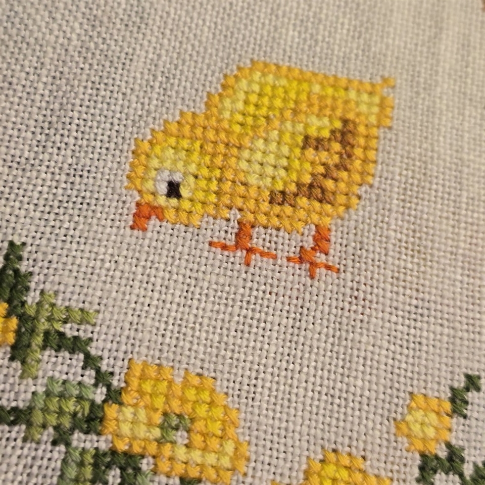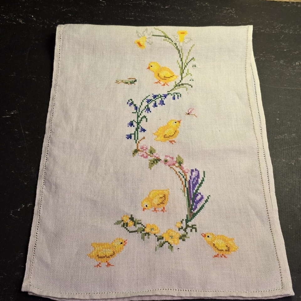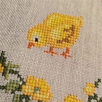Måler 28,5 x 82 cm., er denne nøje håndbroderede løber præget af søde kyllinger og farverige blomster, der tilsammen skaber et livligt og indbydende middagsbordsmiljø. Den fine detaljegrad i korstingsbroderiet tilføjer et håndgjort touch, der garanteret vil imponere dine gæster og give et samtaleemne.