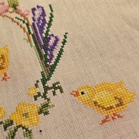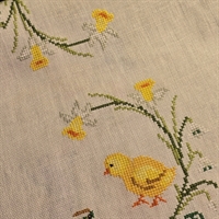 Opfrisk din påskeborddækning med denne charmerende "Påskedug, løber med kyllinger og blomster" i korstingsbroderi! Denne smukke løber er den perfekte tilføjelse til dit hjem i påsken, og bringer en traditionel, men samtidig frisk følelse til enhver sammenkomst.