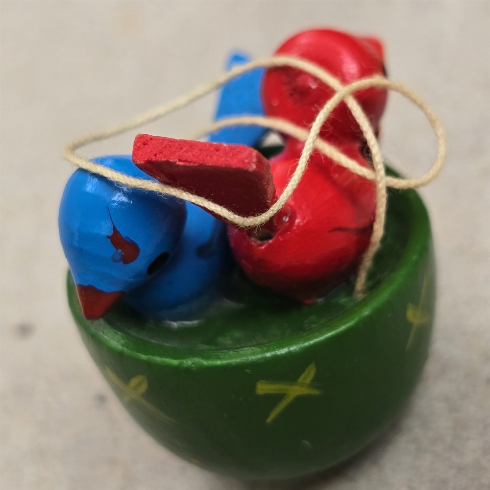Fuglehuset, som er det største element, måler beskedne 3,5 cm. i højden og er en perfekt repræsentation af klassisk håndværk. Disse figurer er ikke kun dekorative, men også et vidnesbyrd om traditionelt håndarbejde, der kan bringe historie og karakter til din påskeudsmykning.