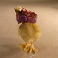 Tørklæde om gul påskehøne, gammel påskepynt.