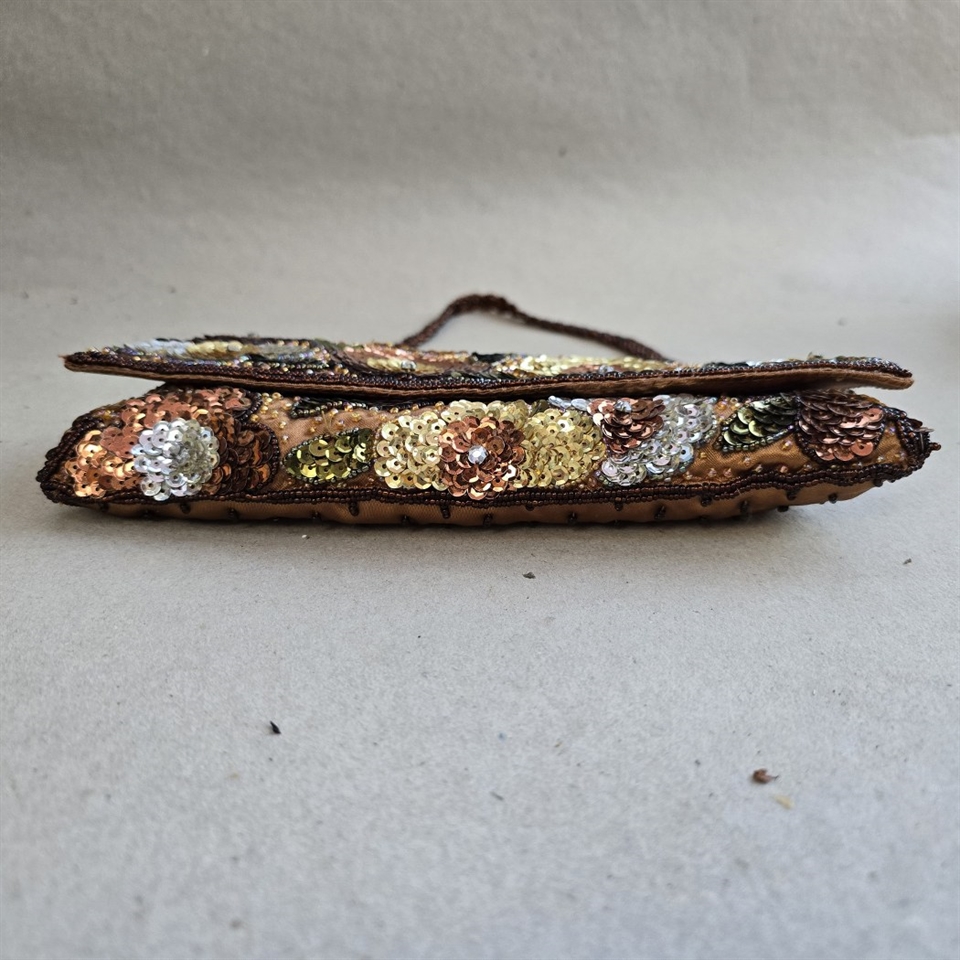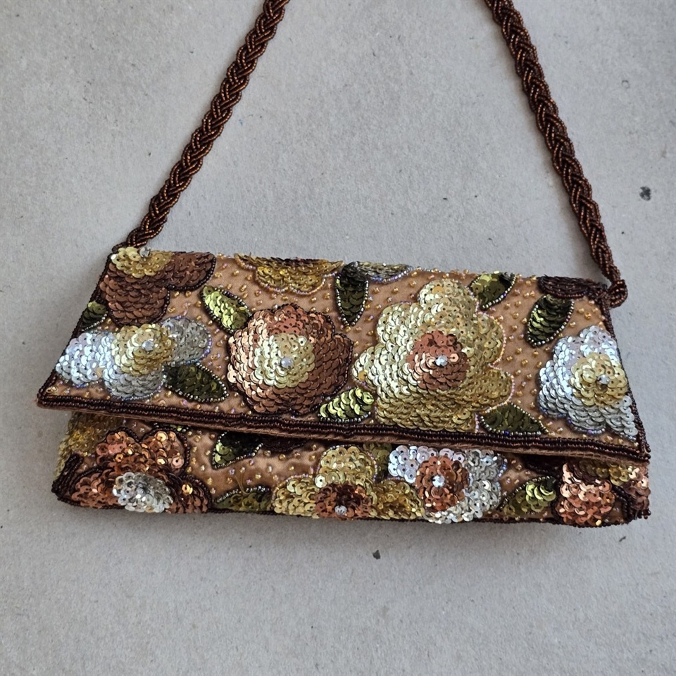 Oplev elegance og tidløs stil med vores "Paillet broderet kuverttaske, vintage aftentaske."