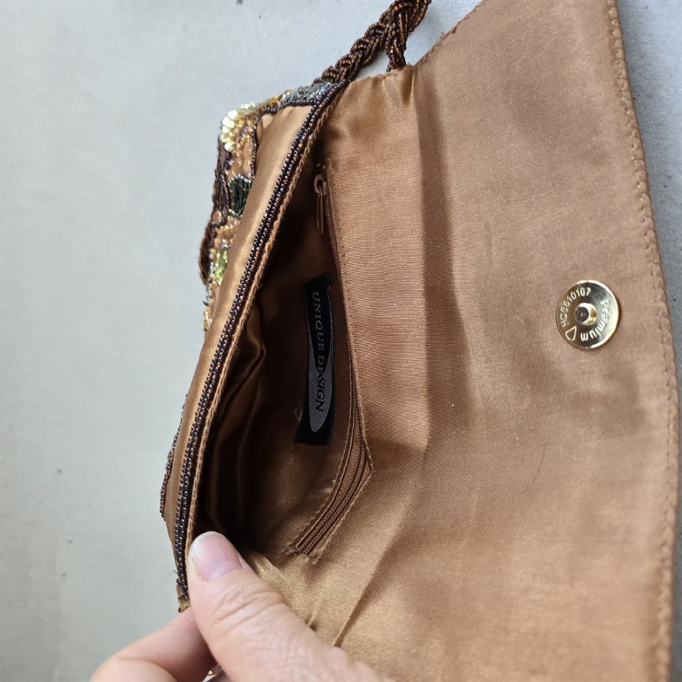 Invester i tidløs skønhed og funktionalitet med vores "Paillet broderet kuverttaske, vintage aftentaske."