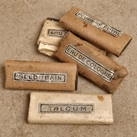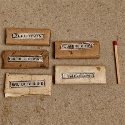 Hver printplade er omhyggeligt indpakket i papir, hvilket tilføjer en rustik charme og beskytter materialet.