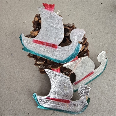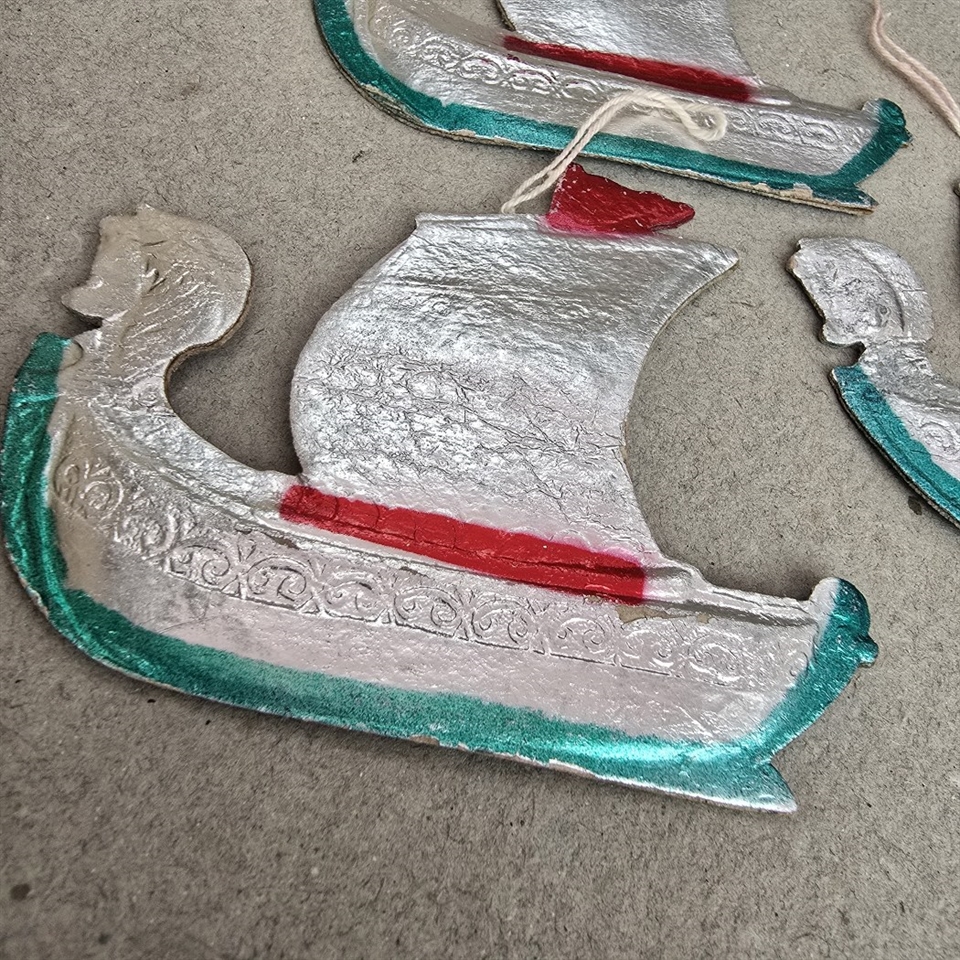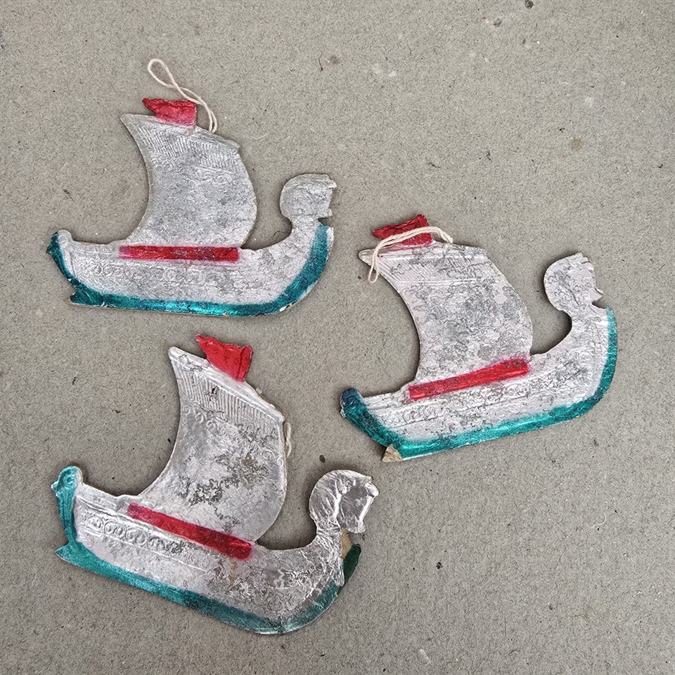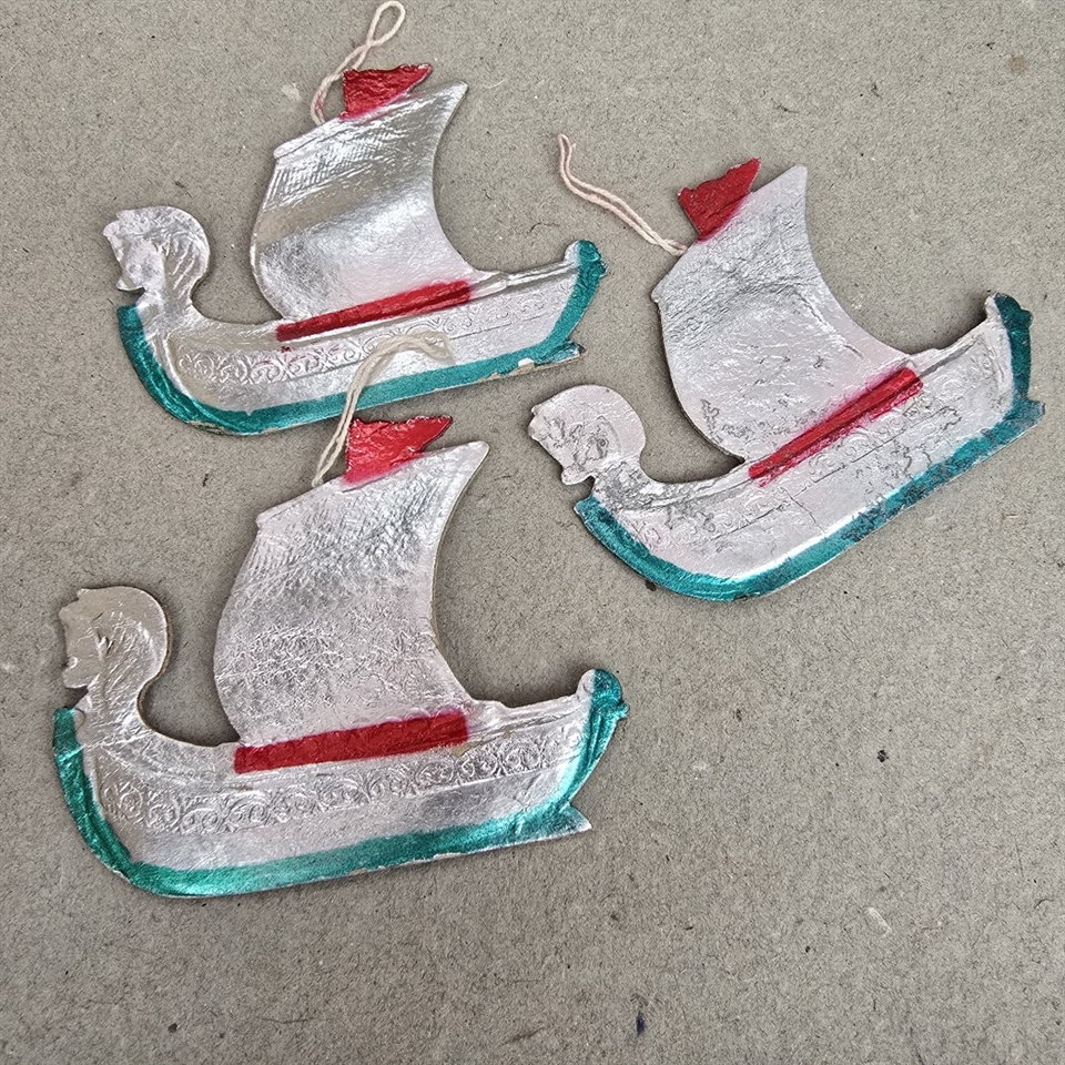 Giv dit juletræ et strejf af nordisk charme med vores eksklusive sæt af tre vikingeskibe juletræspynt!