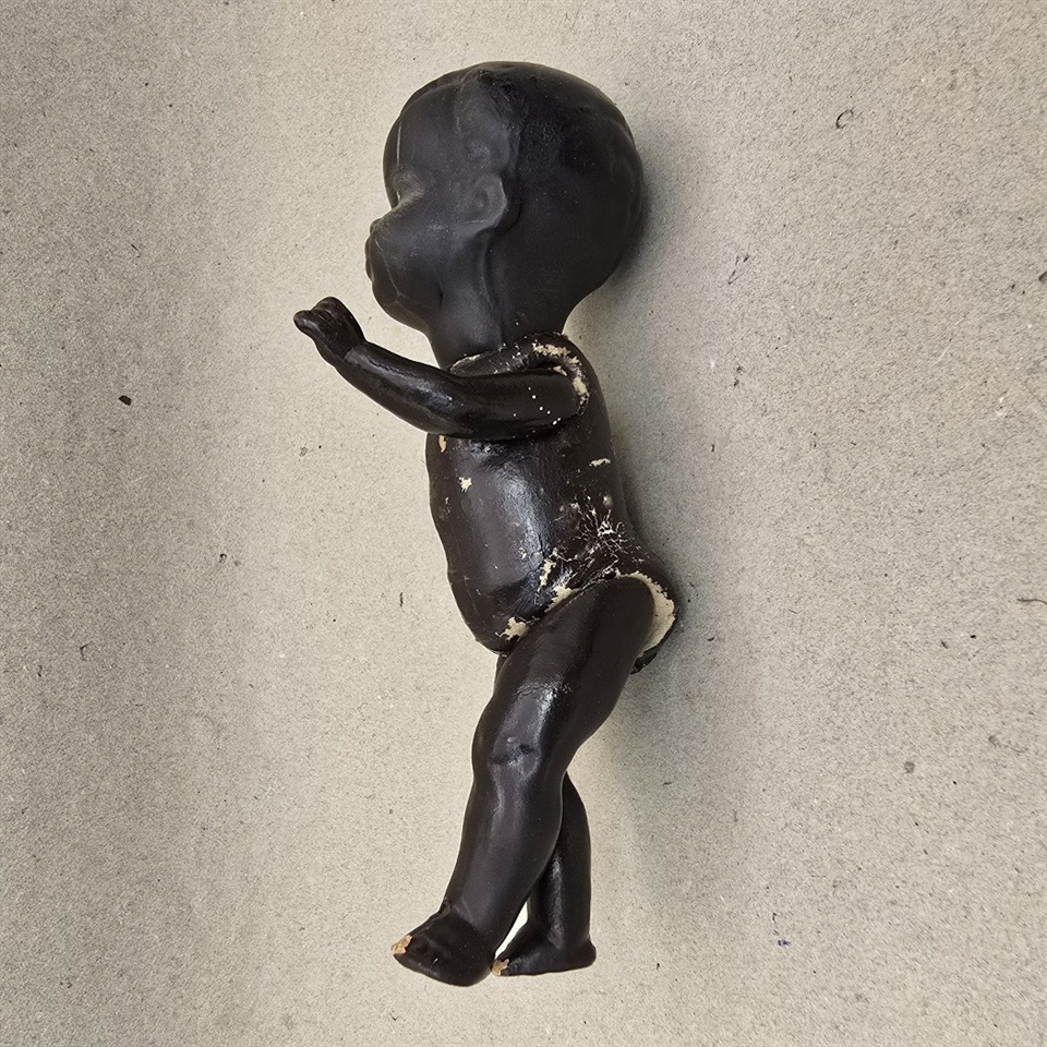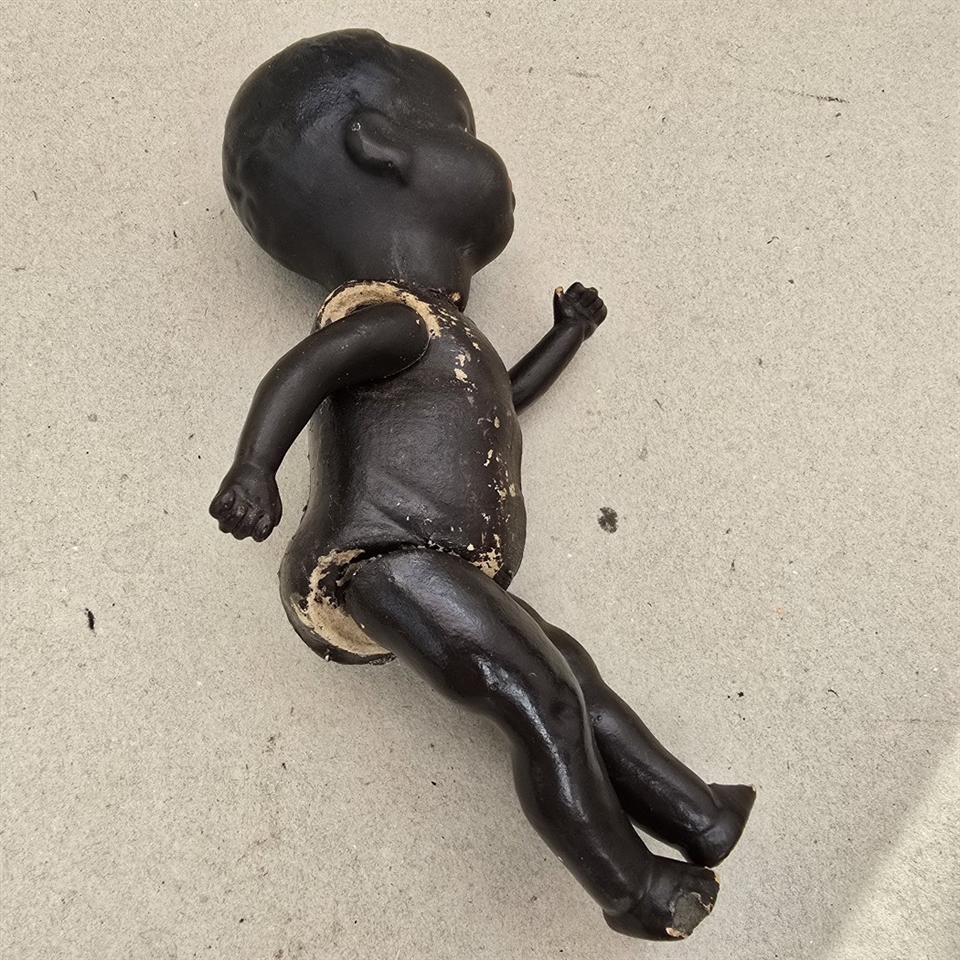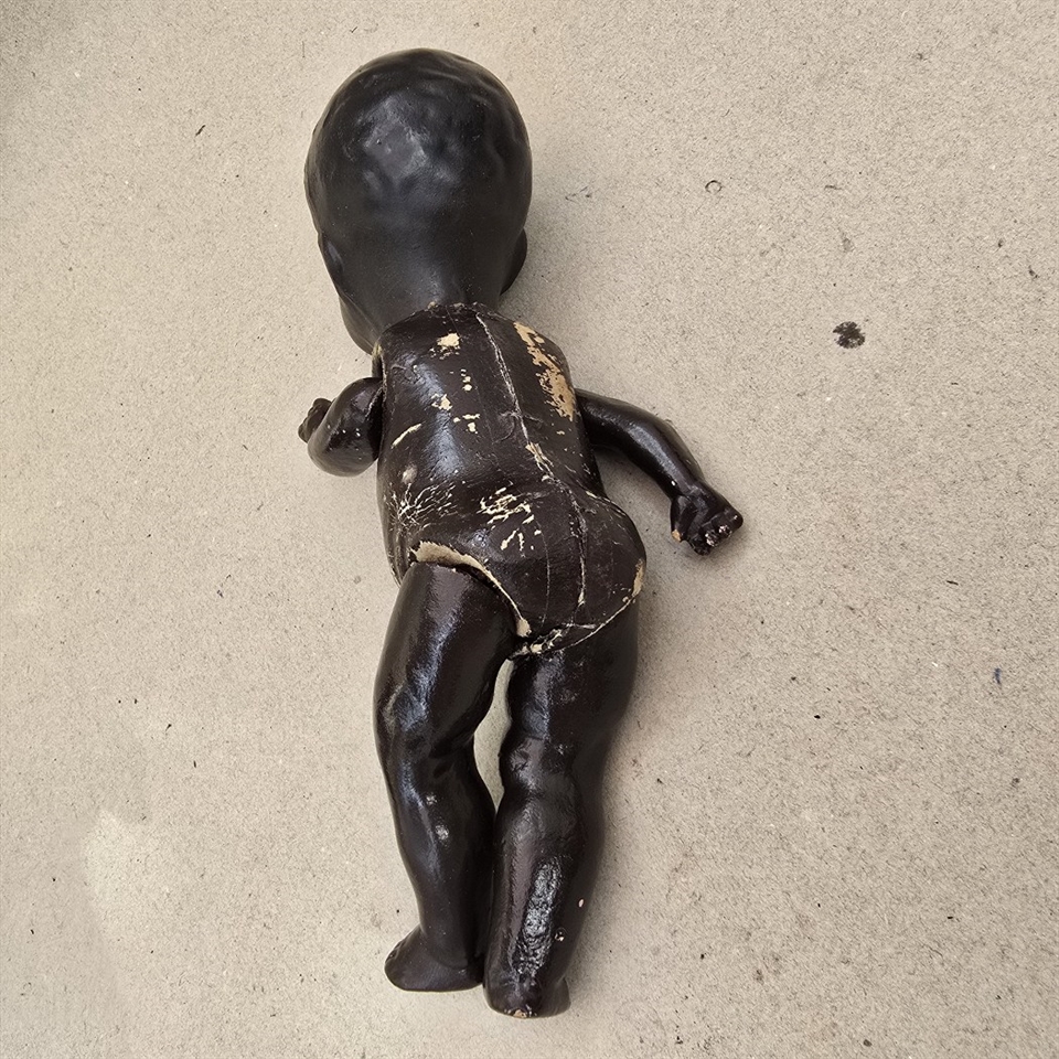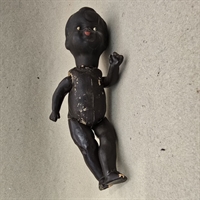 Tag et dyk ned i barndommens charme med denne enestående Papmaché krop på gammel patineret dukke'! Dette unikke stykke legetøj bringer glæde og et strejf af historie ind i dit hjem. Denne dukke, der måler 22 cm. i længden, er ikke kun en legesag, men også et stykke kunst.