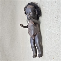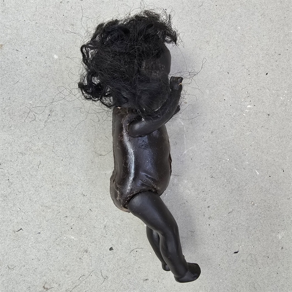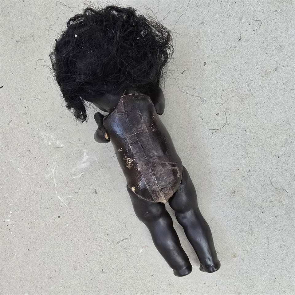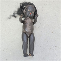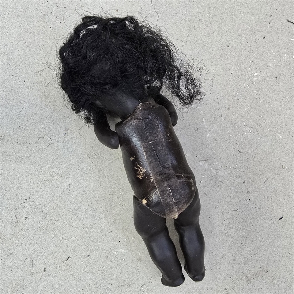 Oplev charmen fra fortiden med denne bedårende vintage dukke, "Papmachekrop, vintage negerdukke med sort hår". Perfekt til samlere eller som en unik gave, denne dukke bringer et strejf af nostalgi til enhver samling. Genbrug.