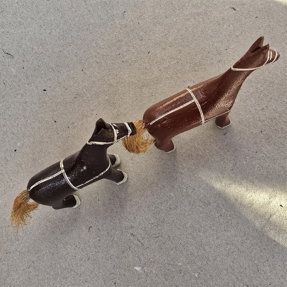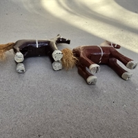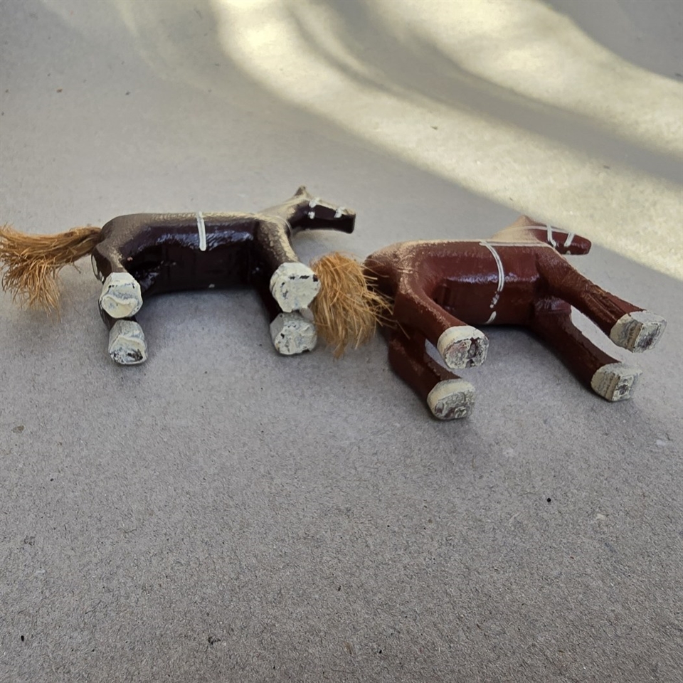 Opdag charmen ved fortiden med disse to håndskårne gamle træheste, et nostalgisk stykke legetøj, der bringer historiens sus direkte ind i dit hjem.