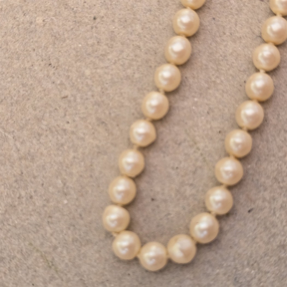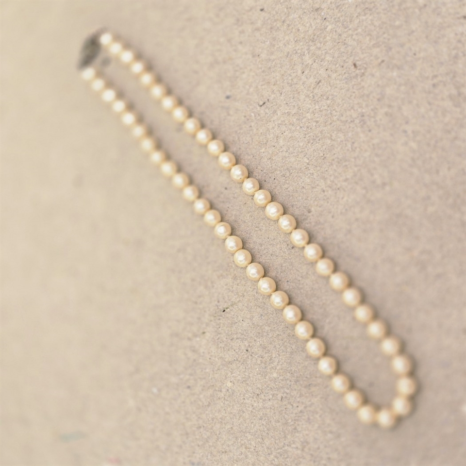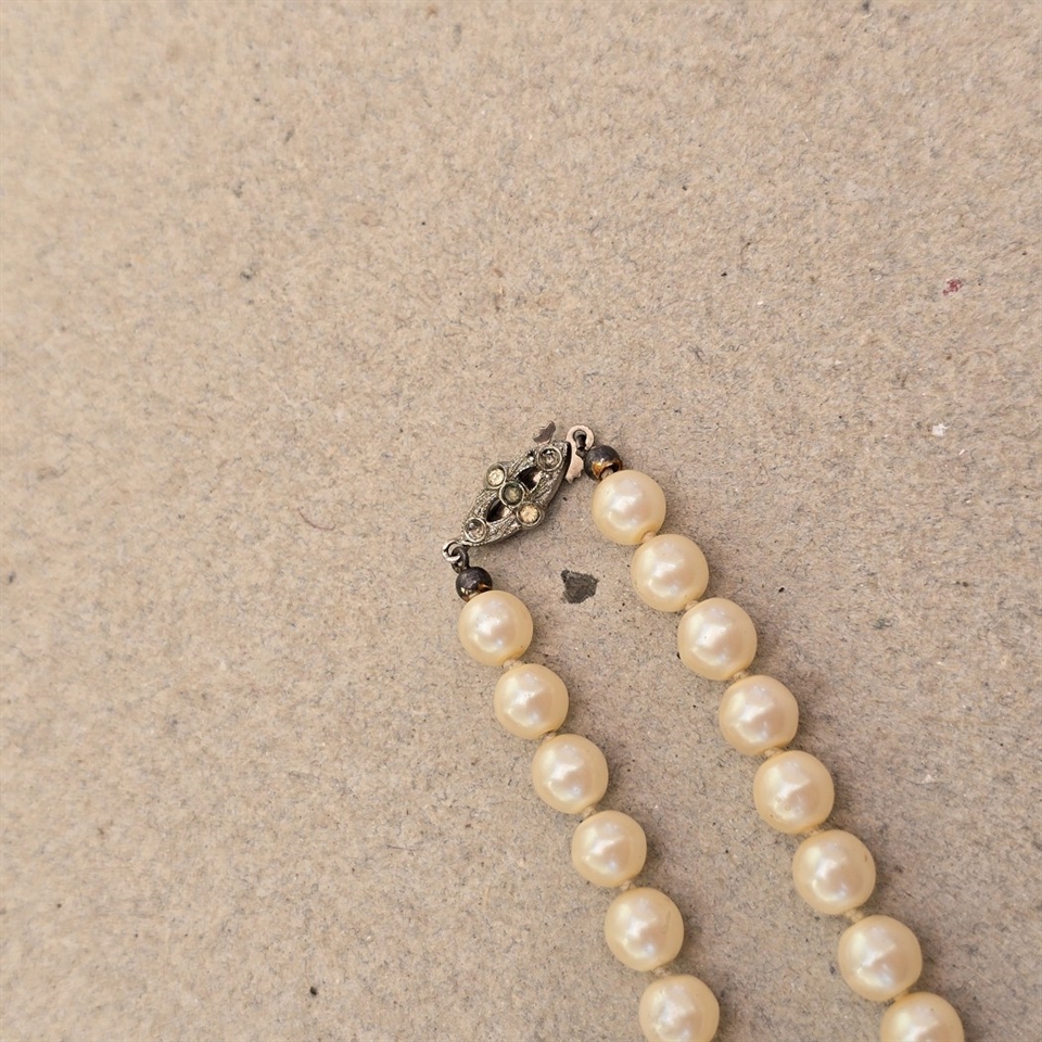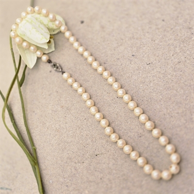 Oplev tidløs elegance med "Perlerække i ligeløb", en vintage halskæde designet til at fuldende dit aftenlook med en touch af klassisk skønhed.