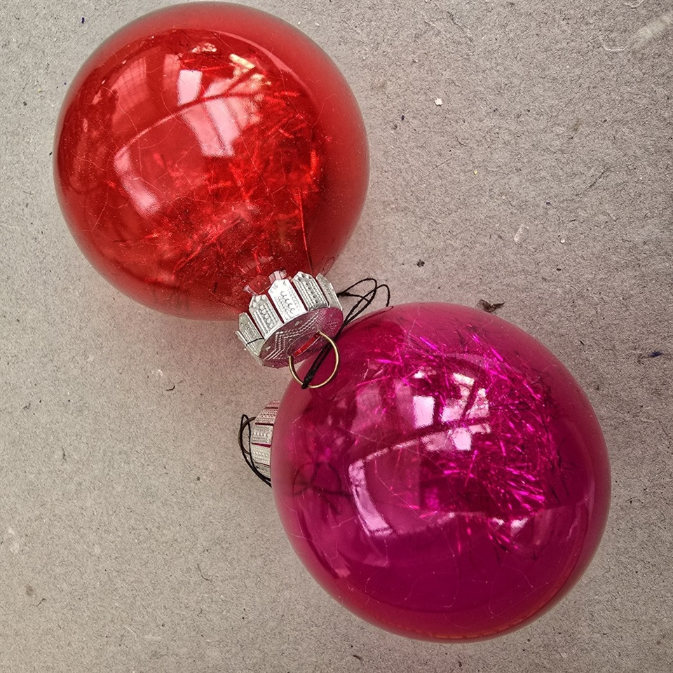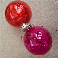 Giv dit juletræ et strejf af nostalgi med vores charmerende sæt af 2 glasjulekugler i pink og rød med indvendigt glimmer!