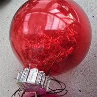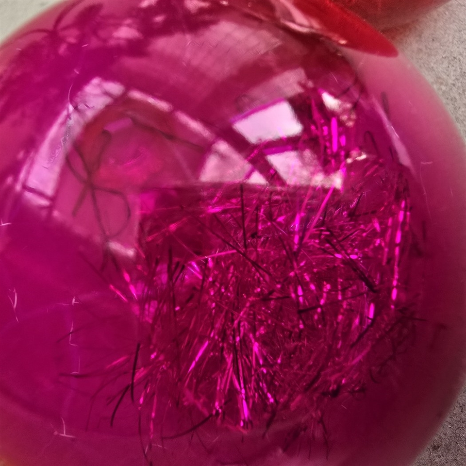 Vores 'Pink og rød glasjulekugle med glimmer' er fremstillet med omhu for at ære traditionelle håndværksmetoder, og hver kugle er unikt detaljeret.