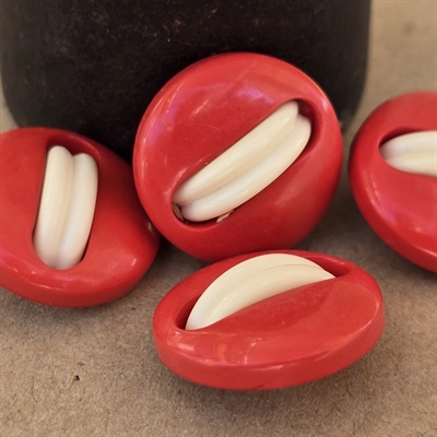 Vores 'Plastik rød, hvide retro knapper' sæt består af 4 stykker, ideelle til enhver form for beklædningsgenstand eller dekorationsprojekt.