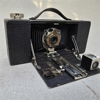 Med sin foldbare design og robuste bygning er dette kamera ikke bare praktisk; det er en samtalestarter. Tag et skridt tilbage i tiden med vores Folding Brownie og oplev glæden ved at skabe billeder, der er lige så tidløse som kameraet selv. Grib dit eksemplar i dag og lad eventyret begynde!
