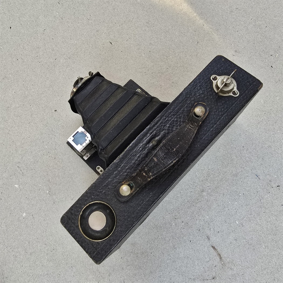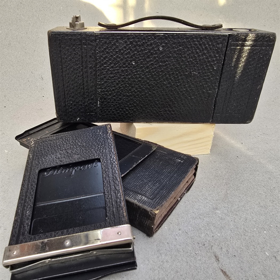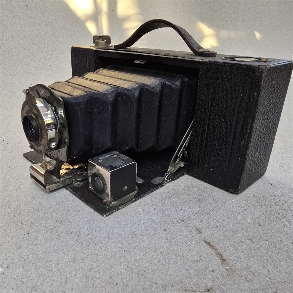Dette charmerende, gamle fotokamera er ikke kun et blikfang, men også et stykke historie, der kan folde sig sammen til en kompakt størrelse på 21,5 x 9,5 cm. og en tykkelse på blot 5,2 cm.