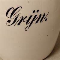Opbevarings krukke med påskriften "grÿn" i porcelæn.