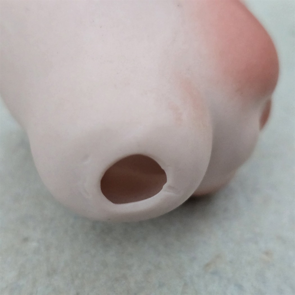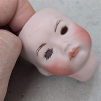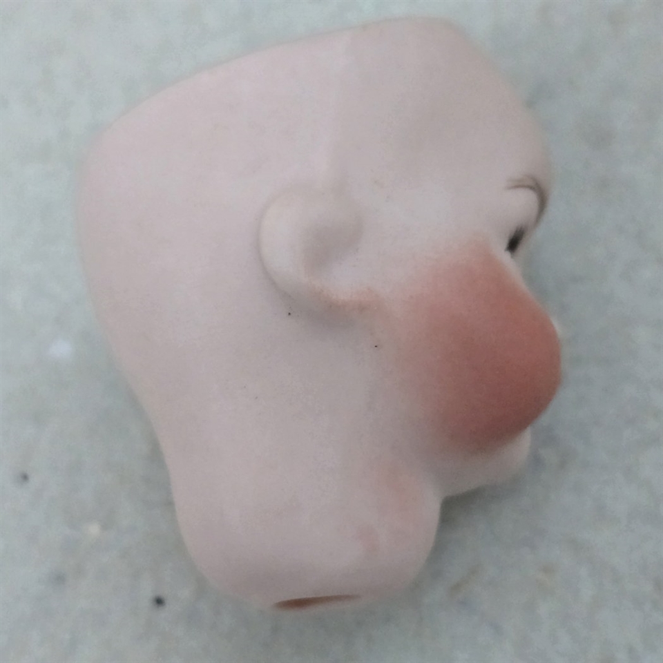 Stående 5,5 cm. højt, er dette charmerende dukkehoved perfekt til at pryde en hylde, skrivebord eller som en del af en større samling.