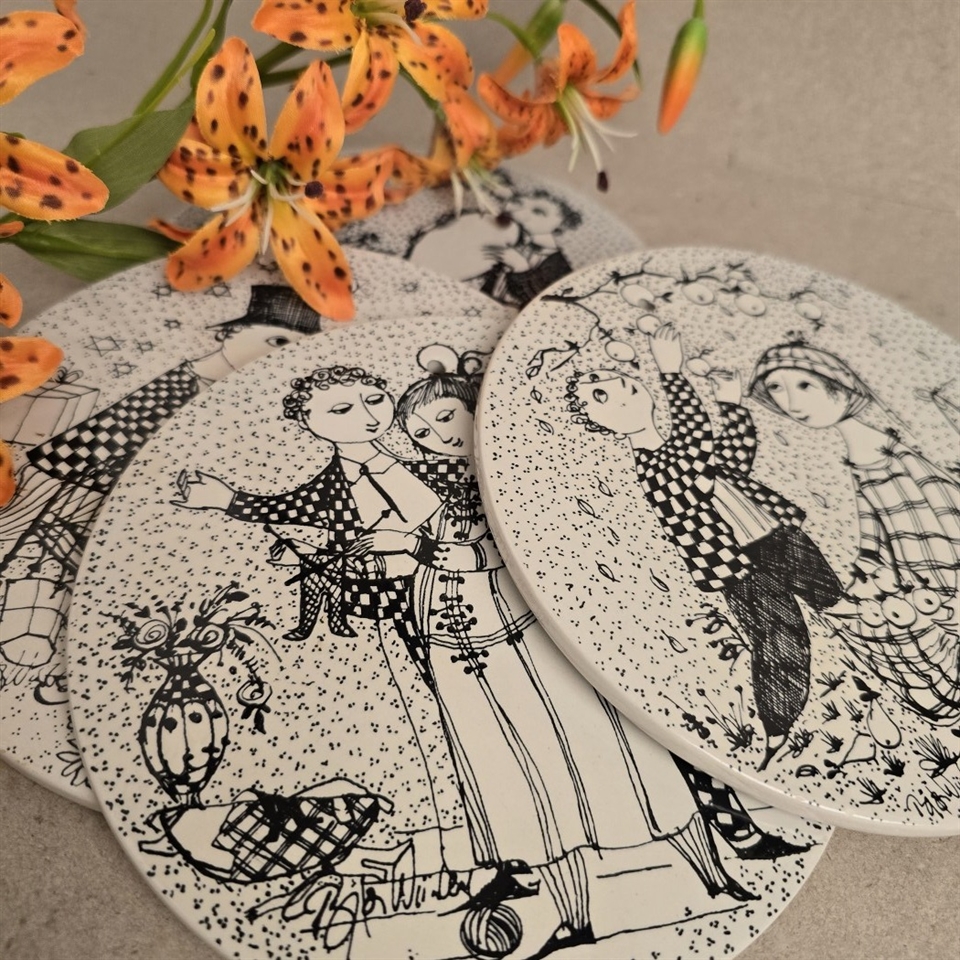 Dette sæt af fire smørebrætter, designet af den legendariske danske kunstner Bjørn Wiinblad, er en sand skat for enhver samler eller en perfekt gave til den designbevidste.